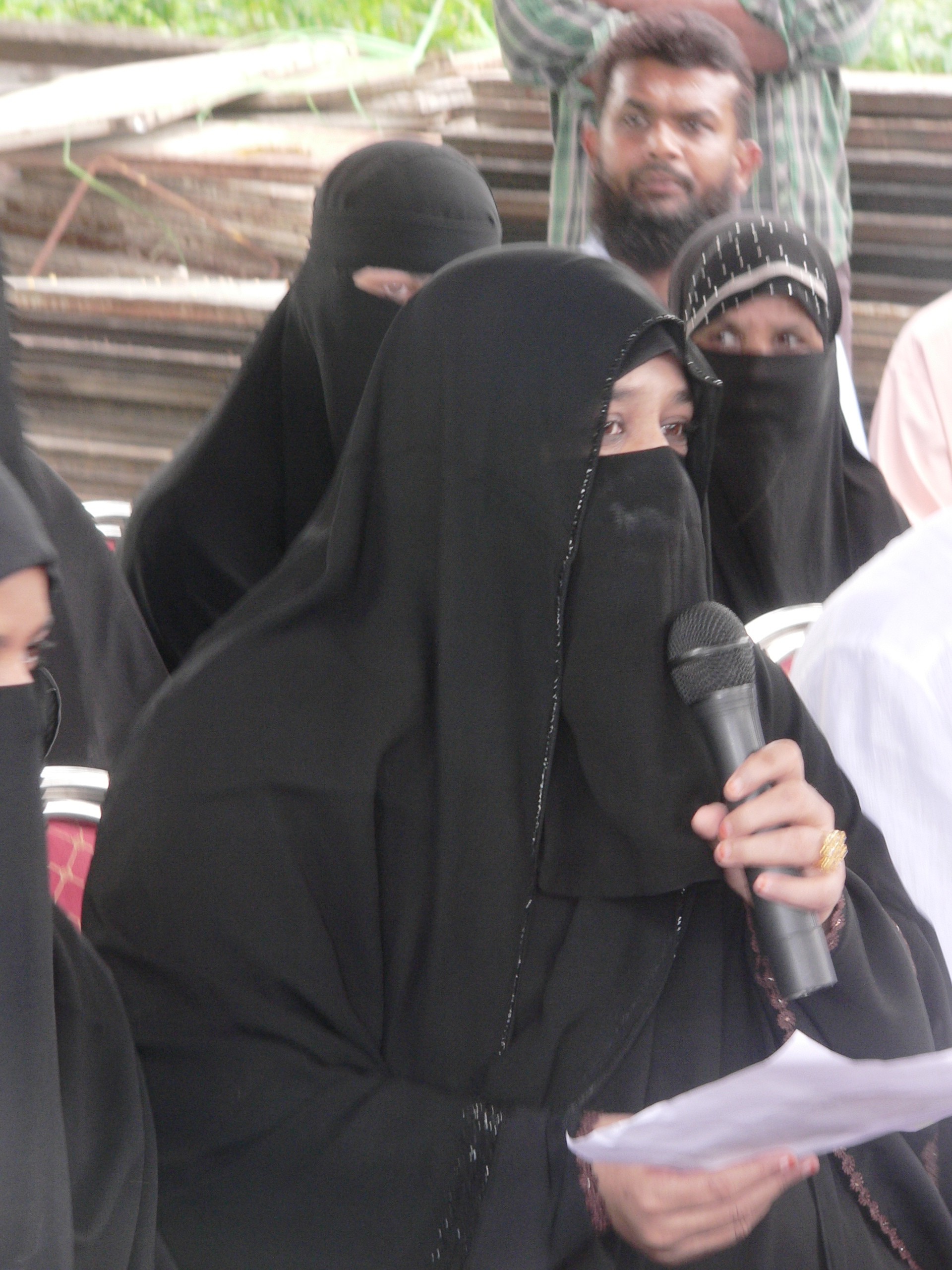 Later, after her completing the long speech, she could not give convincing answers to pointed questions asked by the media persons. Press persons asked her why she was not popular locally despite being a native and owning such a huge business group; they asked her how did she arrive at the figure of 6 lakh Muslim girls from the 3.5 lakh Muslim voters; one person asked about the courses being offered; another person asked whether permission was obtained for the construction in the name of college or simply in the name of madrasa. For all such pointed questions, she gave evasive answers. When asked about her educational qualifications, she first refused, and later when pressed, she said that she studied in a school in Chennai. When asked about the name of the Chennai school, she said that it was an Islamic school and she didn’t mention which part of Chennai was the school located.