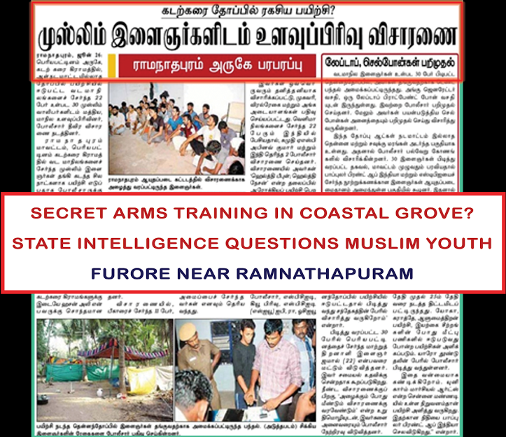 The fundamentalists of Ramanathapuram have been vociferously supporting ISIS and Kashmiri separatist movements. Almost the entire coastal area has fallen under the control of jihadis. Secret camps are conducted for giving weapons training. Rampant smuggling of gold, arms and narcotics has been happening with ease. Palm groves and thorny bushes serve as excellent hideouts. Mosques with tall minars are being built at regular intervals along the coast.