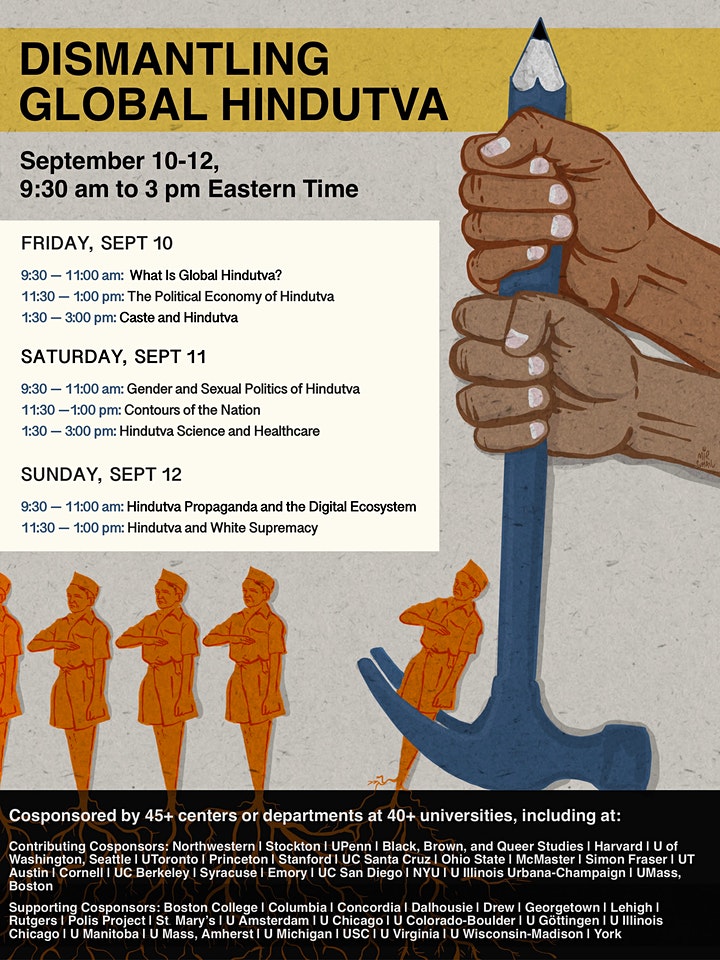 When the whole world is alarmed at the swift takeover of Afghanistan by the regressive, Islamist, self-proclaimed jihadi Taliban, a three-day conference on “Dismantling Global Hindutva” has been announced from 10-12 September 2021. As circulated on social media, the poster of the conference attempts a false equivalence upon unsuspecting readers in the opening lines, “Militant Hindu groups exist and are growing exponentially” and “Rampant violence against minorities”. But what is of much greater cause of concern is the claim that this politically prejudiced crusade disguised as an academic event is supposedly cosponsored by some 60 departments and centres from over 45 top universities in North America including Berkeley, Emory, Toronto, Goettingen, and my own alma mater, the University of Illinois.