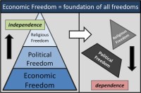 The Frasier Institute’s definition of economic freedom is this: “Individuals have economic freedom when property they acquire without the use of force, fraud, or theft is protected from physical invasions by others and they are free to use, exchange, or give their property as long as their actions do not violate the identical rights of others. An index of economic freedom should measure the extent to which rightly acquired property is protected and individuals are engaged in voluntary transactions.”