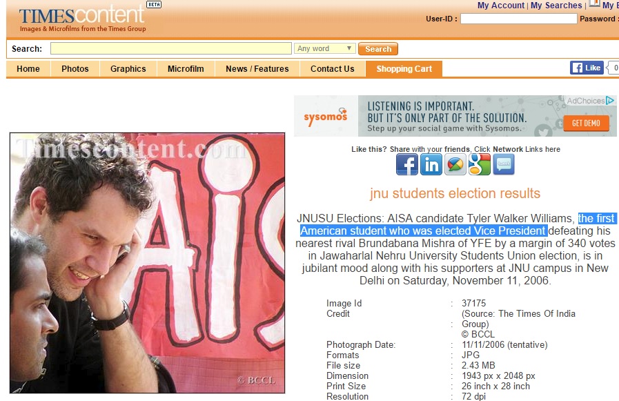 After a look at Tyler Williams’ Twitter feed, we came across many tweets with an anti-Hindu tone. Archived issues of the Times of India also state Tyler Walker Williams (a JNU grad) as being the first American student to be elected as the VP of AISA—the ultra-left student wing of the Communist Party of India (Marxist–Leninist) Liberation. AISA and the Communist Party of India are often criticized for their strong public anti-Hinduism stance and have called for the banning of the celebration of many Hindu festivals at various Indian universities. The irony is that the lecture by Rajiv Malhotra included Hinduphobia in academia and the need for a fair non-biased debate with inclusion of all perspectives.
