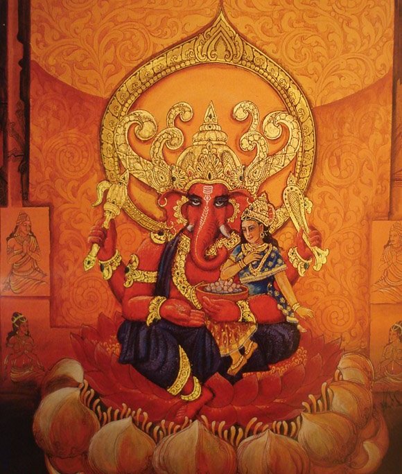 Ganesh is verily the chosen deity of the youth. Himself youthful and energetic, he is “sadaa baalaroopaapi vignaadrihantree” (although young always, can yet despoil a mountain of obstacles) according to Sankara. Innumerable are the temples dedicated to him throughout the length and breadth of the country. In states like Tamilnadu, there cannot be found any street corner in cities and towns and any village where there is not at least one Vinayaka temple—big or small. The Ashtha Siddhi Vinayakas near and around Poona and nearly 200 places known for Ganesha worship are listed in Maharashtra alone. He is popular in other States too, but not looked uniformly by all people in the county. In the North he is younger brother of Karthikeya and having two wives, Siddhi and Buddhi, while in the South he is the elder one and a confirmed bachelor.