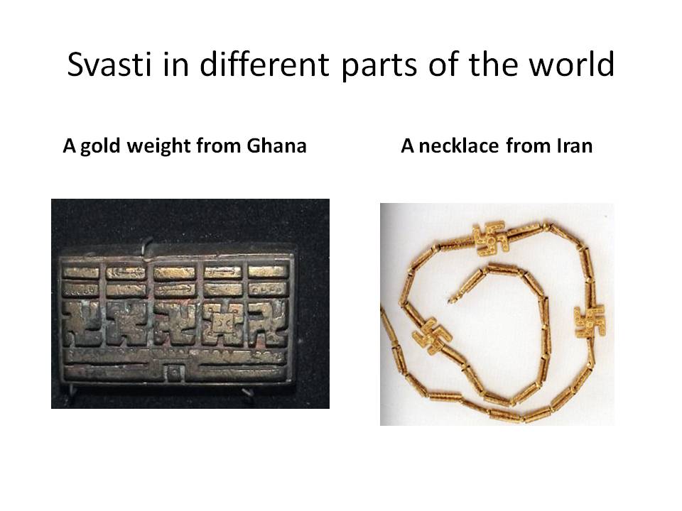 Svasti in Ghana and IranAll this was ignored by Europeans. They created the unscientific Aryan invasion theory according to which the invading Aryans were white Europeans of pure blood! The Wikepedia notes: “The Nazis claimed that the early Aryans of India, from whose Vedic tradition the swastika sprang, were the prototypical white invaders. The concept of racial purity was an ideology central to Nazism, though it is now considered unscientific.” In fact even at the time scientists, including German scientists denounced it as unscientific. But like the equally unscientific Dravidian theory the idea persisted because it met some political needs.